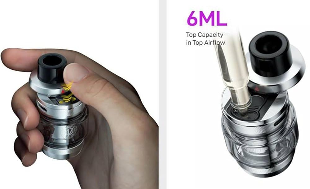 Le iTank T Dual Mesh reprend le style de l’iTank T, mais avec quelques touches plus dynamiques. Toujours en acier inoxydable, il se distingue par un airflow élargi qui optimise l’utilisation des résistances GTi.